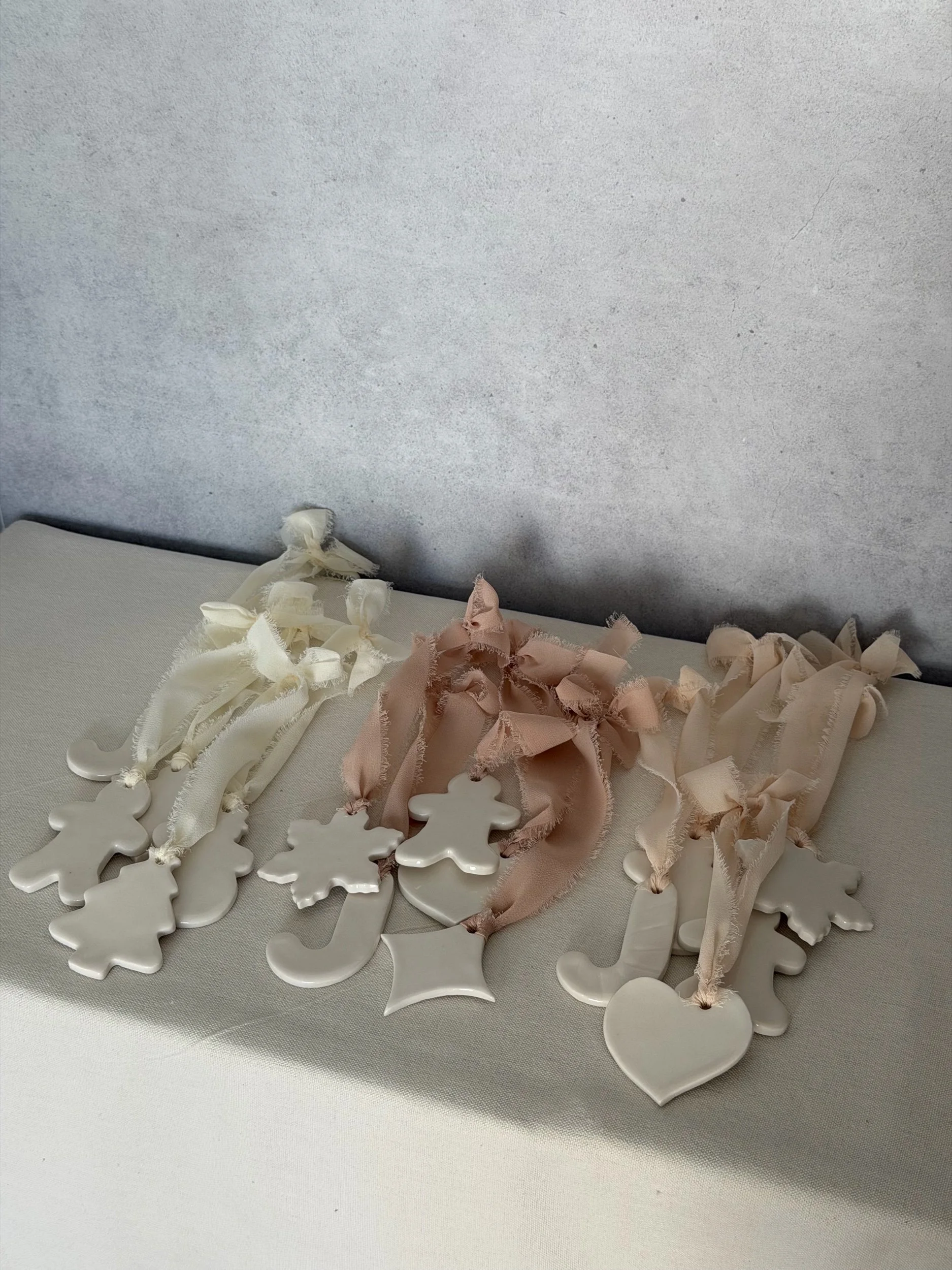 Each ornament is carefully crafted in my home studio in Los Angeles, featuring unique shapes and rustic charm that bring warmth and personality to your Christmas decor. Perfect for adorning your tree, gifting to loved ones, or enhancing your holiday celebrations.